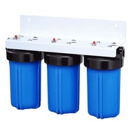 Filtro de agua manual azul grande de 10 pulgadas de 3 etapas con soporte y cubierta inoxidable para uso en toda la casa y el automóvil